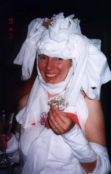 Marilyn all dressed up in her practice Wedding Dress, just before the boys burst thru the door